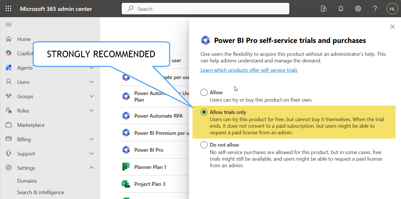 Task 02: Enable Power BI Pro/PPU in Microsoft 365 Admin Center