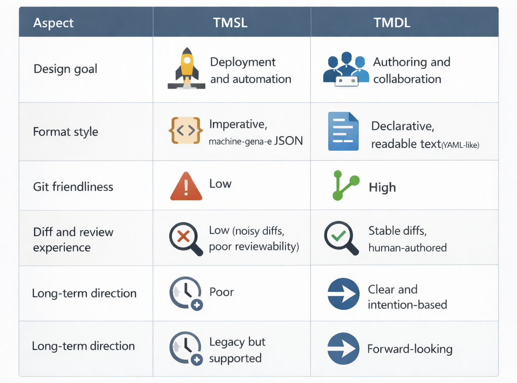 - Model definition format - TMSL vs. TMDL