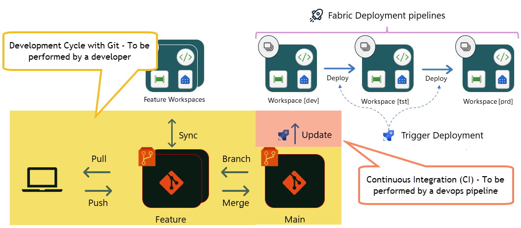 In this article, you’ve seen how Git-enabled workspaces, feature branches, pull requests, and automated Update from Git operations work together to form a true CI process. Developers remain focused on authoring reports, while automation ensures that approved changes are continuously and reliably integrated into a controlled workspace, ready for promotion through deployment pipelines.