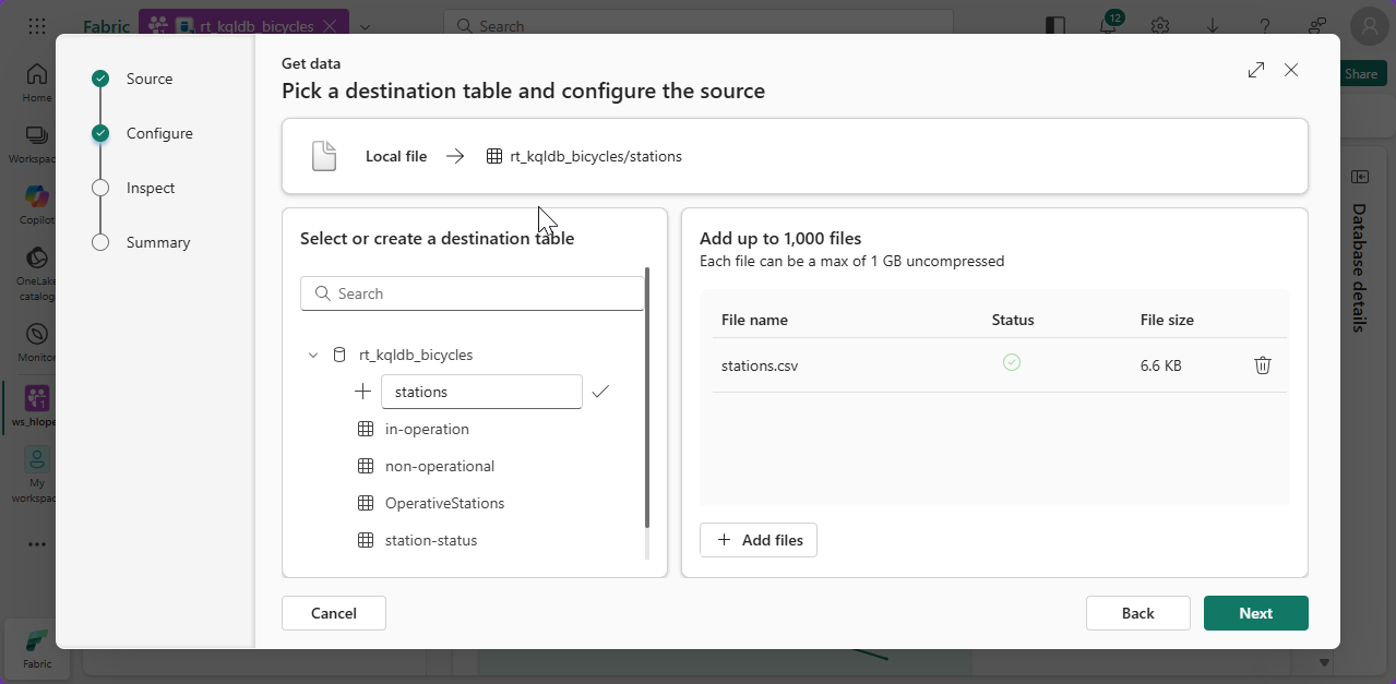 #3. Click + New Table and give the name stations 1️⃣, click on Brose for files and choose the file downloaded in Step #1.