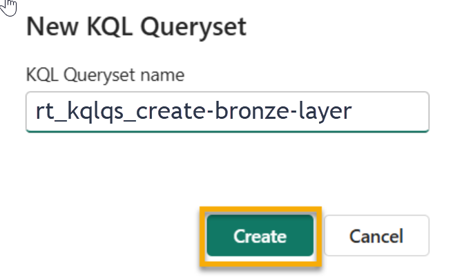 #2. Name the Queryset rt_kqlqs_create-bronze-layer and then click Create.