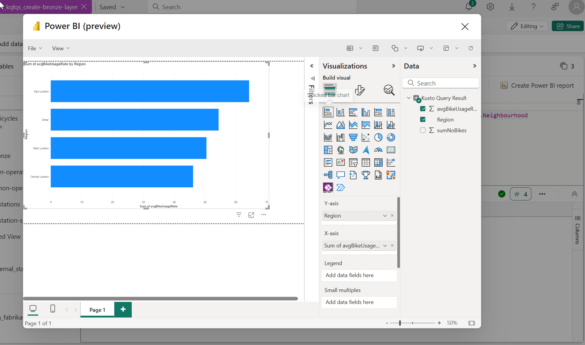 #3. Next, let's look at how to quickly visualize this result within Power BI. With your query highlighted click on the button in your toolbar, Create Power BI report.