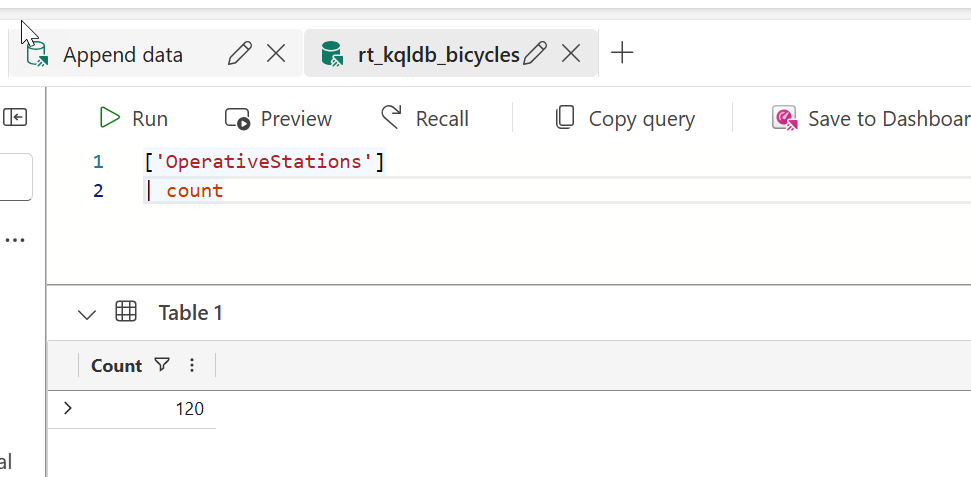 🤓 The .append command in KQL is a one time operation that is used to add data to an existing table. When you use the .append command, it takes the results of a query and appends them to the specified table. This is particularly useful in our example to backfill the table with historical data.