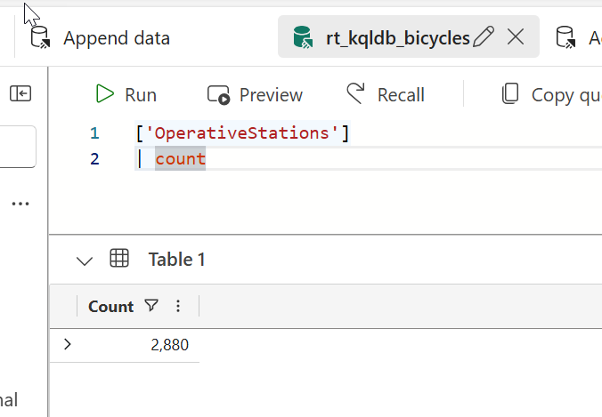 #2. Once you run the KQL statement, you will see data immediately appear in your table. Running the following KQL query (perhaps in a new queryset tab) will help you validate your results, your results will be much different than the screenshot below, but you will have data!