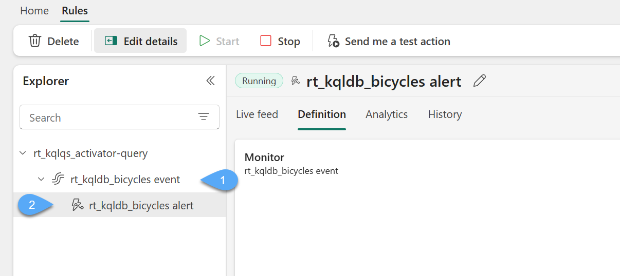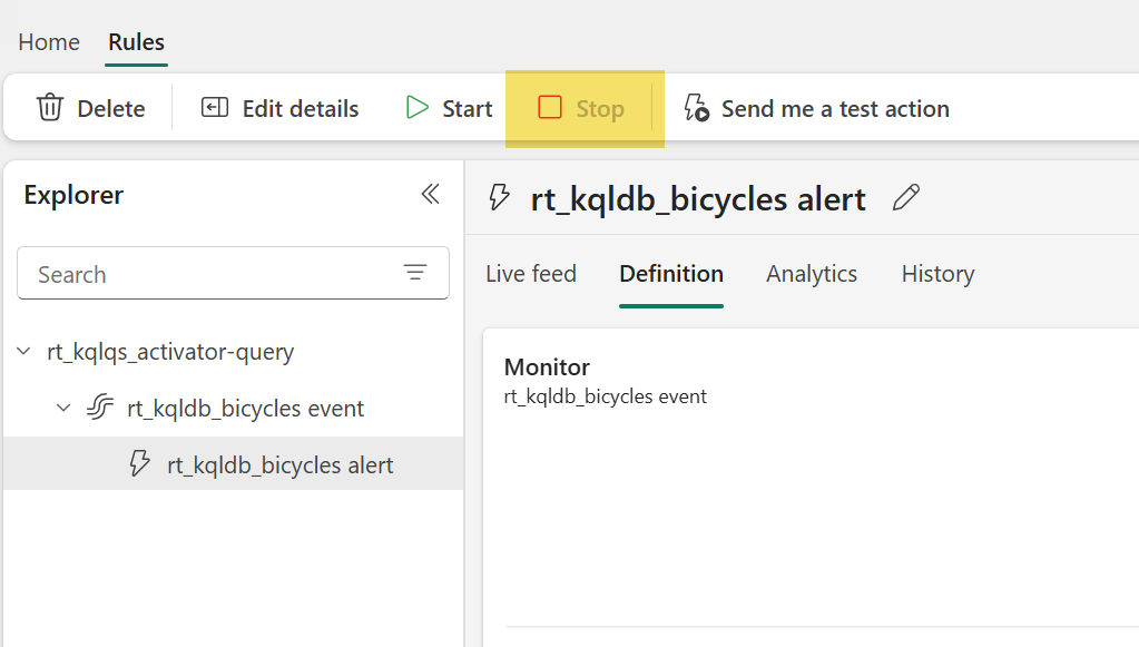 Now that we have established our enriched silver layer, we can create alerts to detect abnormal or critical operational states in bike rental stations — specifically, when a station is completely full (i.e. has no empty docks) or like in this case, stations that have no additional bicycles for rent. To achieve this we can leverage Activator which is a no-code experience for automatically taking actions when patterns or conditions are detected in streaming data.