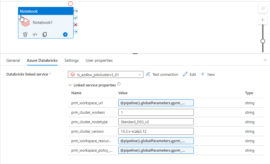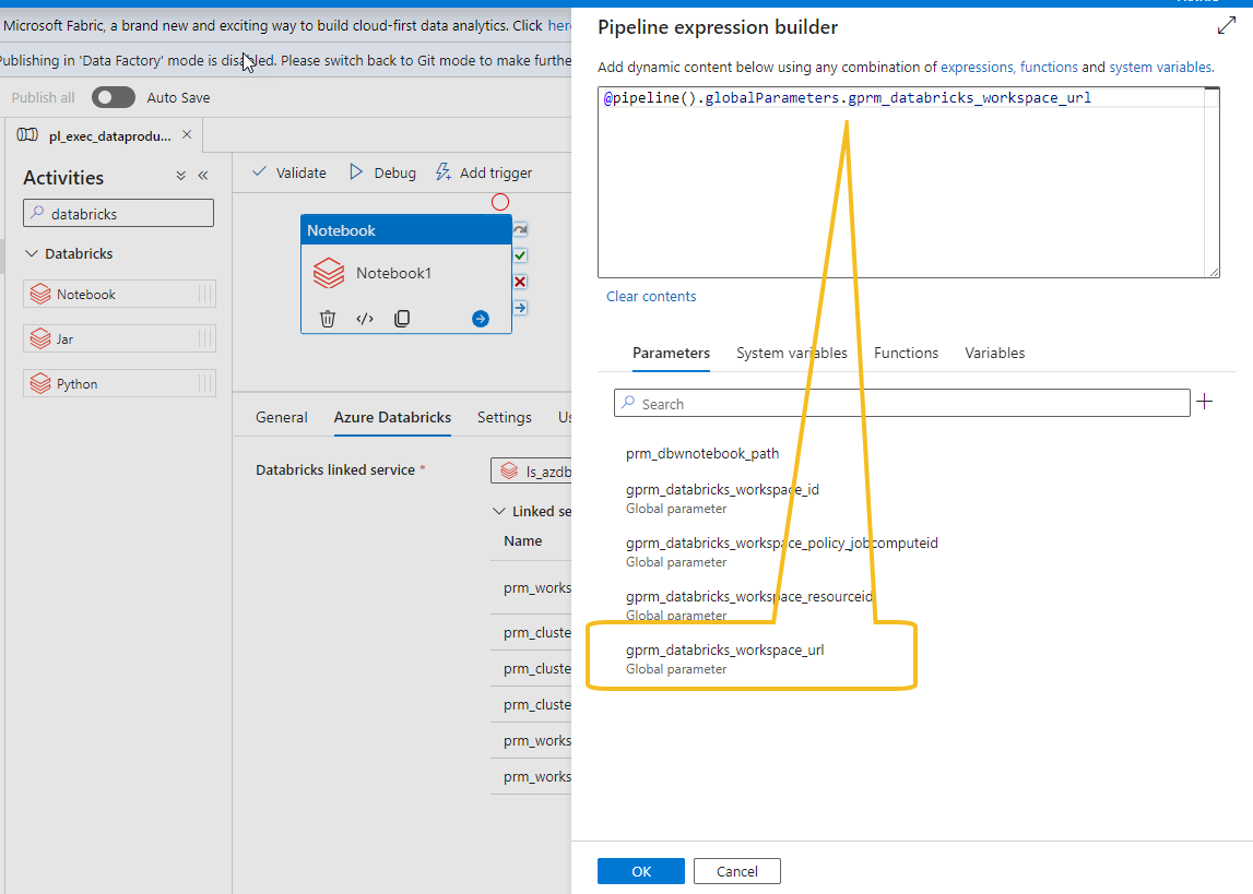 And use the corresponding global parameter corresponding to Databricks workspace URL