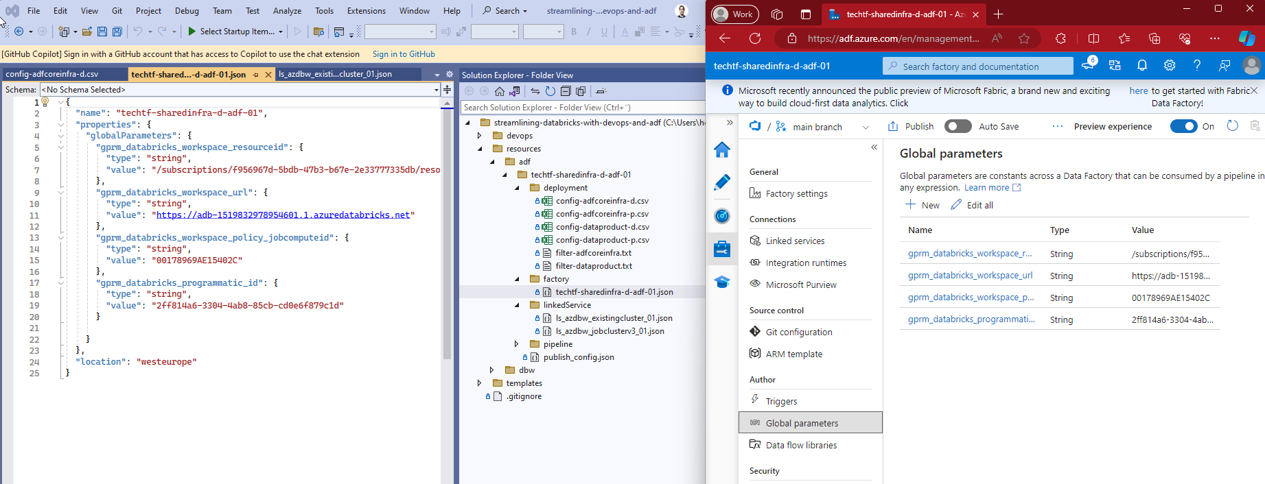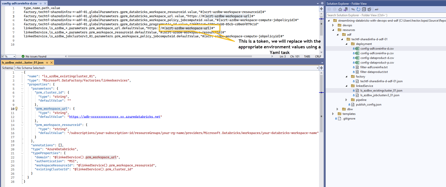 We are going to use this information to create parameterized ADF's linked services and global variables using a slightly modified version of the Automating ADF's CI/CD with Selective Deployment on Shared instances (Generation 3) where I create a "tokenized" version of my configuration Configuration files