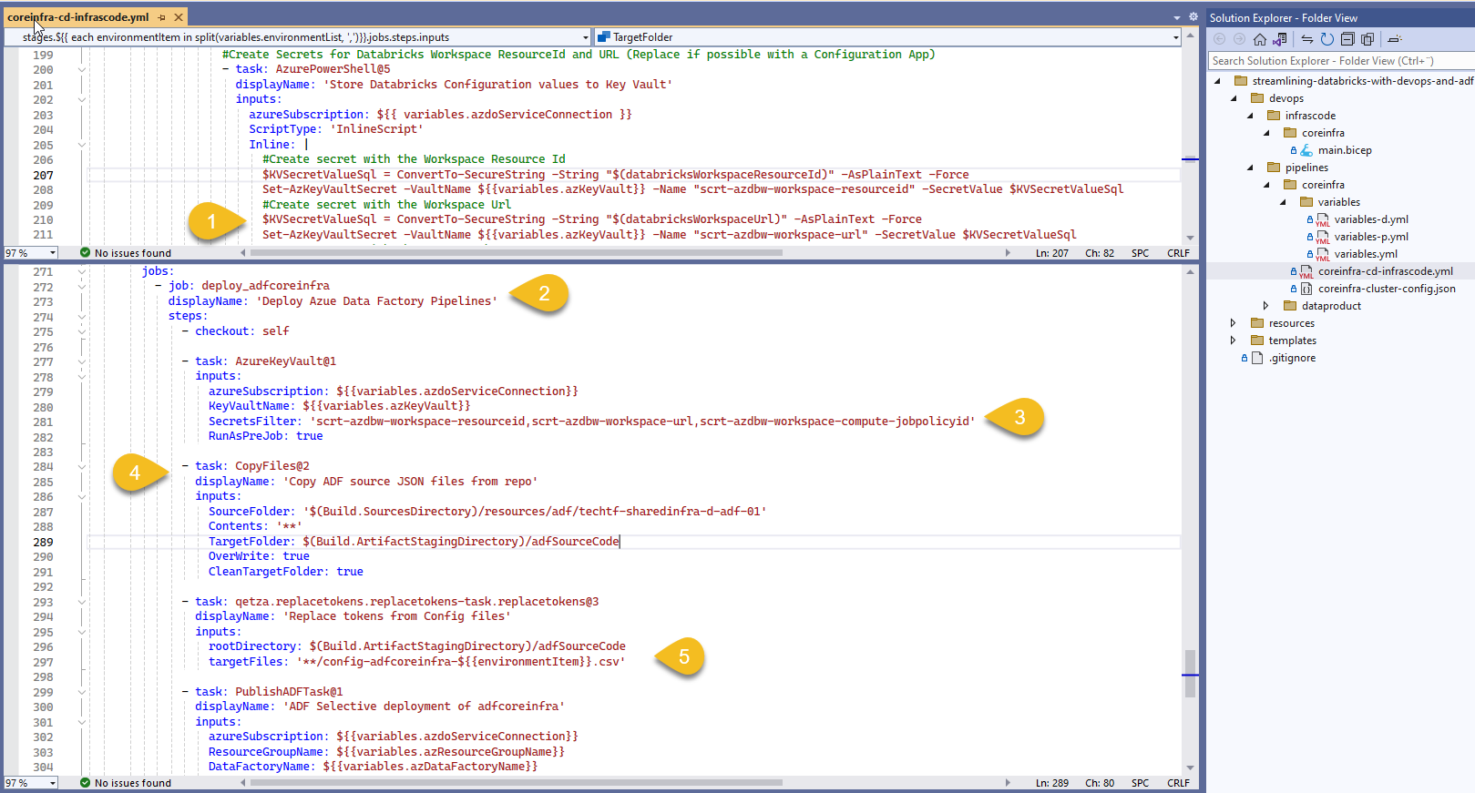 Get the code from AzDO Git repository streamlining-databricks-with-devops-and-adf and deploy the whole infrastructure linked together ππ€!