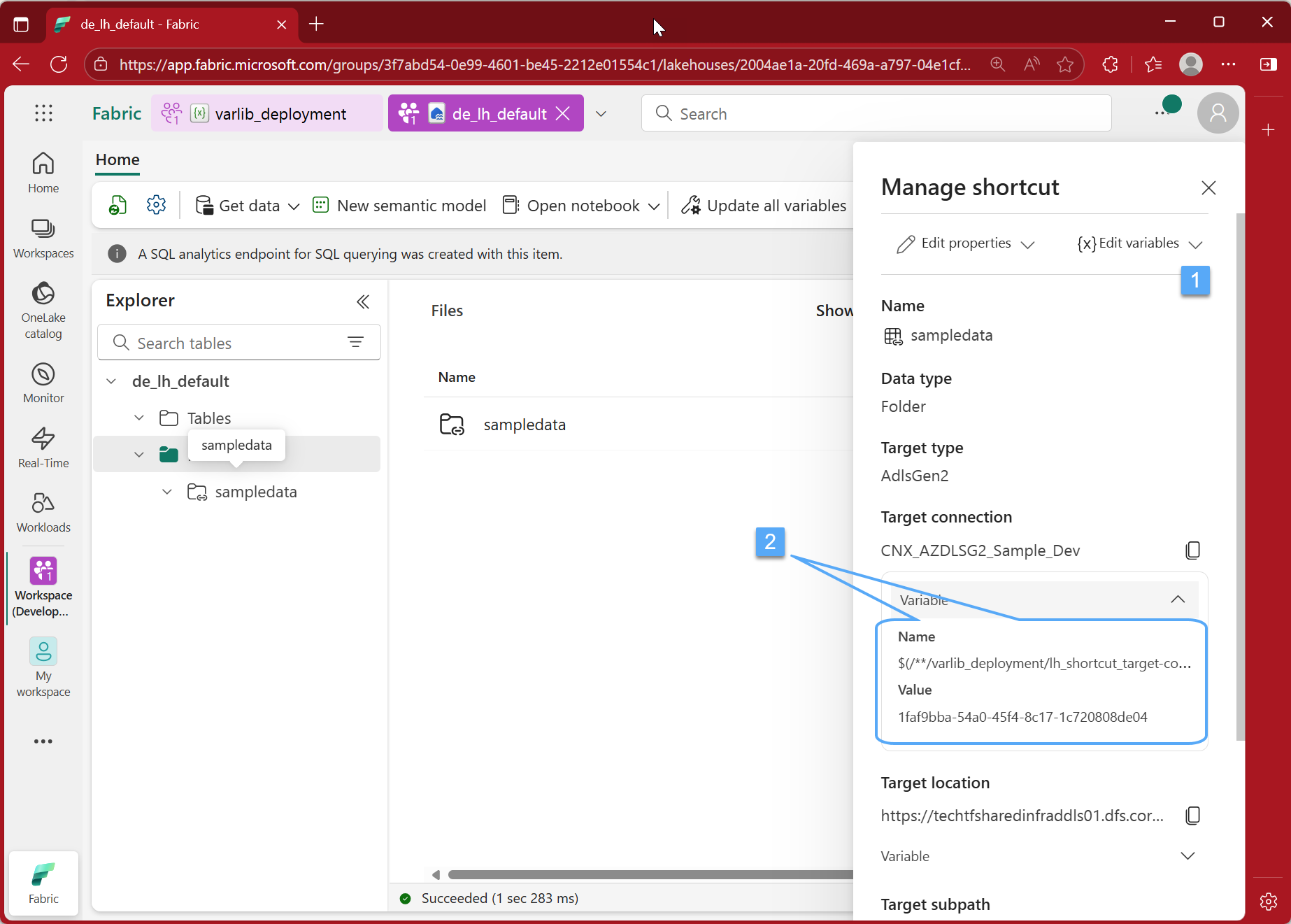 However, for Lakehouse shortcut we need something else that I wasn't aware of until just recently: variable libraries.